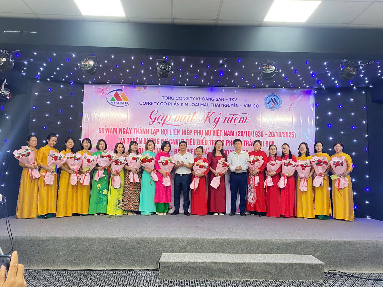 Thực hiện Công văn số 305/CĐTKS ngày 15/9/2025 của Công đoàn Tổng công ty Khoáng sản v/v tổ chức các hoạt động kỷ niệm 95 năm Ngày phụ nữ Việt Nam (20/10/1930-20/10/2025) và Chương trình công tác nữ công năm 2025, ngày 18/10/2025, Công ty Cổ phần Kim loại màu Thái Nguyên – Vimico đã tổ chức kỷ niệm 95 năm Ngày phụ nữ Việt Nam (20/10/1930-20/10/2025) và tuyên dương nữ CNVLĐ tiêu biểu phong trào thi đua “Giỏi việc nước – Đảm việc nhà”.