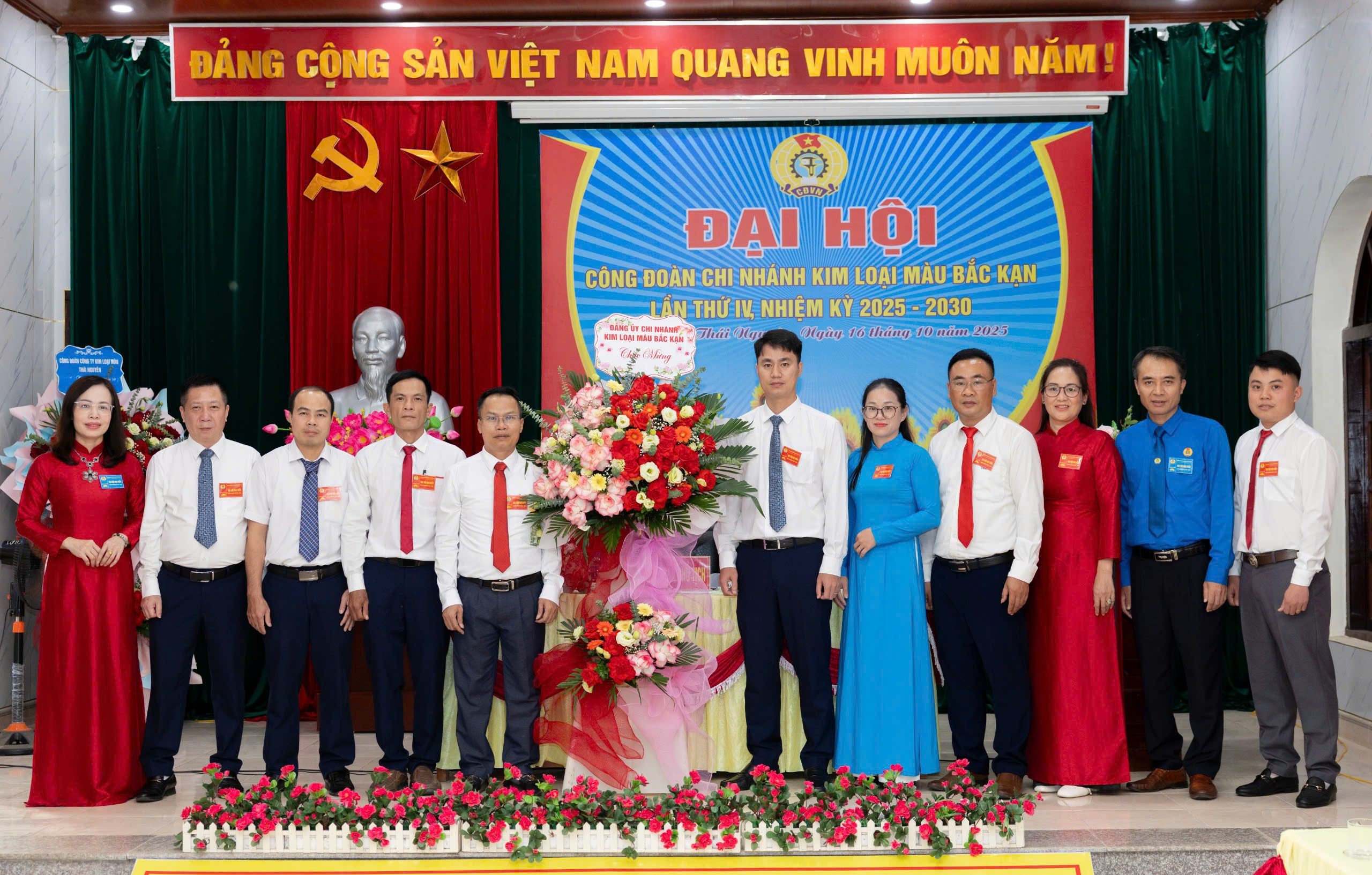 Ảnh: Công đoàn Công ty Kim loại màu Thái Nguyên tặng hoa chúc mừng Đại hội Công đoàn Chi nhánh khóa IV, nhiệm kỳ 2025-2030