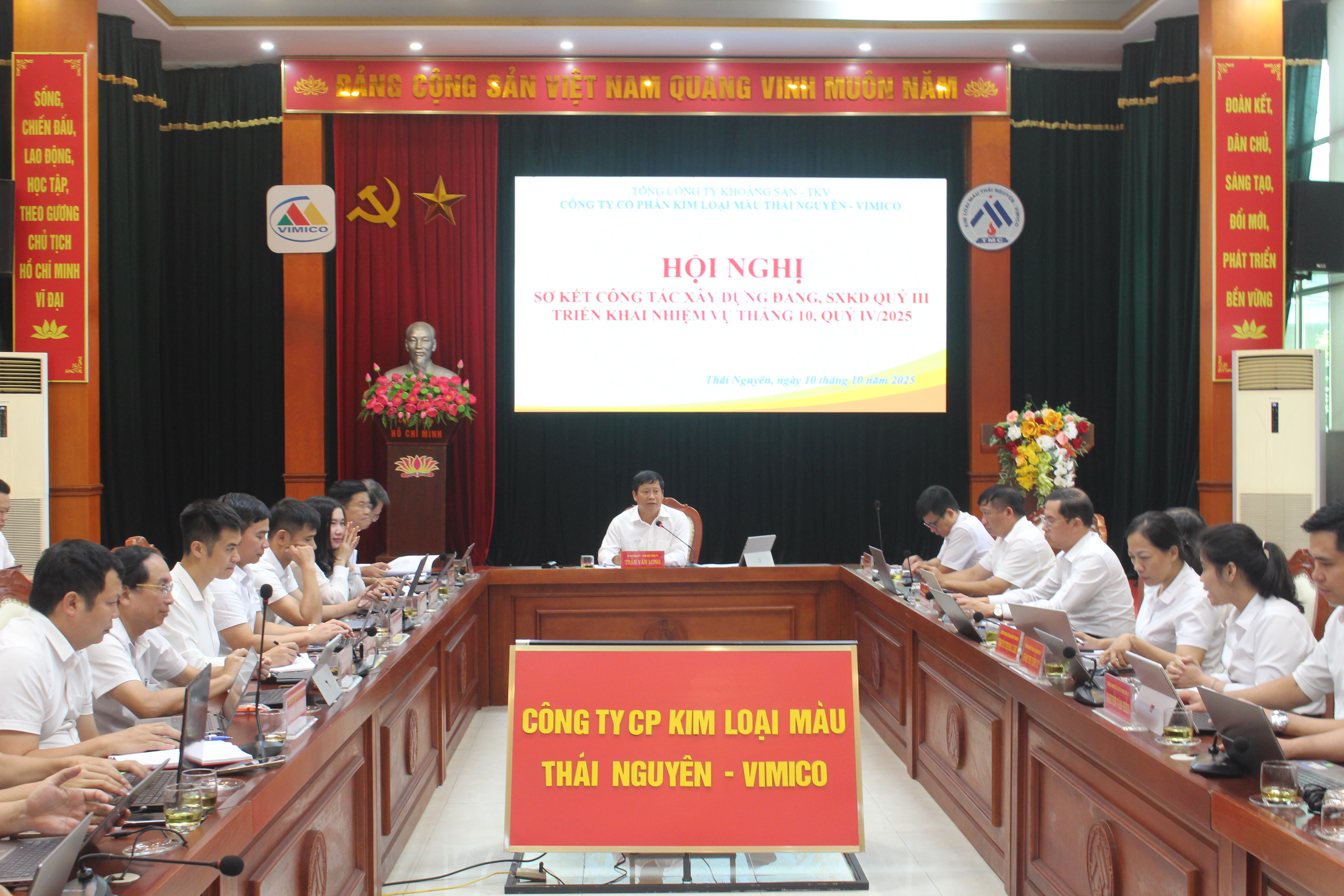 Sáng ngày 10/10/2025, tại Cơ quan Công ty Cổ phần Kim loại màu Thái Nguyên – Vimico, Đảng bộ Công ty tổ chức hội nghị sơ kết công tác xây dựng Đảng và hoạt động sản xuất kinh doanh quí III, 9 tháng đầu năm, triển khai nhiệm vụ quí IV năm 2025.