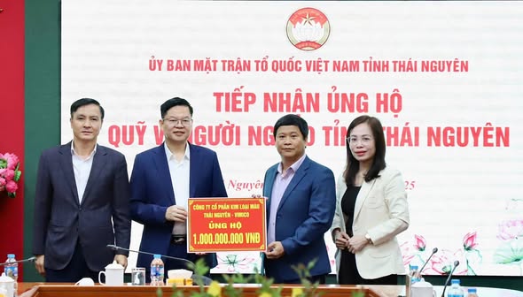 - Tập đoàn Công nghiệp Than - Khoáng sản Việt Nam, Tổng công ty Khoáng sản – TKV, Công ty Cổ phần Kim loại màu Thái Nguyên – Vimico trao ủng hộ tỉnh Thái Nguyên khắc phục hậu quả bão lũ