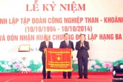 ( 31/05/2019 )Sáng 11/10, tại Hà Nội, Tập đoàn Công nghiệp Than – Khoáng sản Việt Nam (TKV) đã long trọng tổ chức lễ kỷ niệm 20 năm thành lập (10/10/1994 – 10/10/2014) và đón nhận Huân chương Độc lập hạng Ba do Đảng, Nhà nước trao tặng. Đến dự buổi lễ, về phía lãnh đạo Đảng,