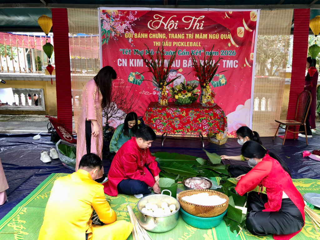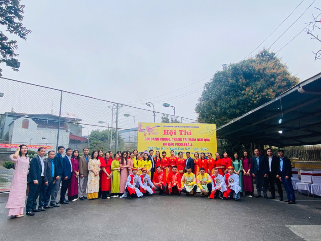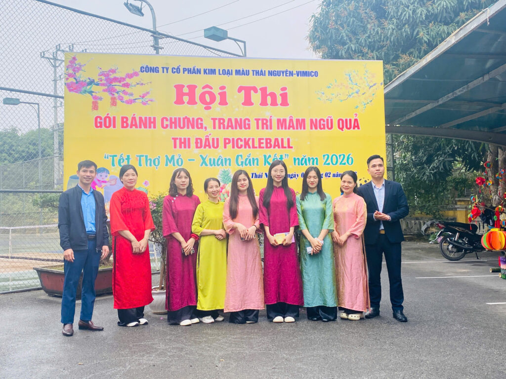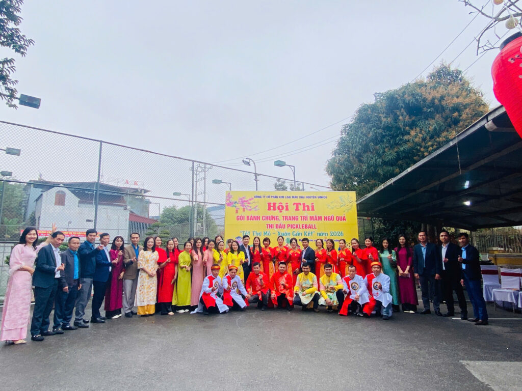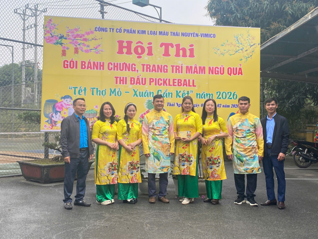 Hòa chung không khí vui tươi, phấn khởi chào đón Tết Nguyên đán Bính Ngọ năm 2026, ngày 07/02/2026 (tức ngày 20 tháng Chạp), Công ty Cổ phần Kim loại màu Thái Nguyên – Vimico tổ chức Hội thi gói bánh chưng, trang trí mâm ngũ quả và thi đấu Pickerball với chủ đề “Tết Thợ mỏ – Xuân gắn kết”.