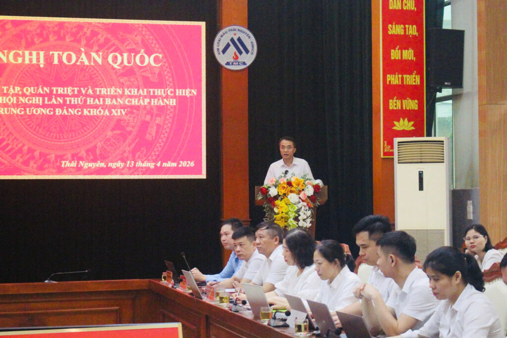 Ngày 13/4/2026, Đảng ủy Công ty cổ phần Kim loại màu Thái Nguyên – Vimico tổ chức điểm cầu tham dự Hội nghị toàn quốc nghiên cứu, học tập, quán triệt và triển khai thực hiện Nghị quyết Hội nghị lần thứ hai Ban Chấp hành Trung ương Đảng khóa XIV bằng hình thức trực tuyến.
