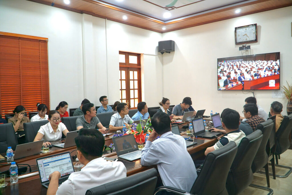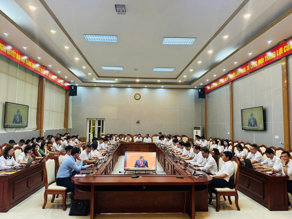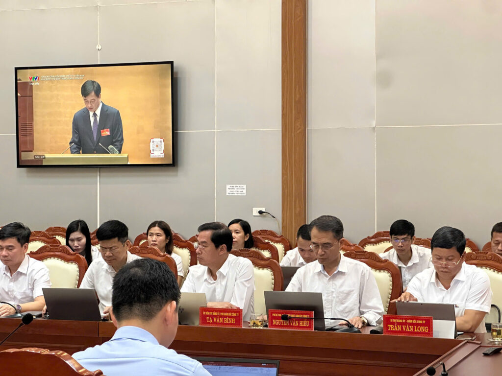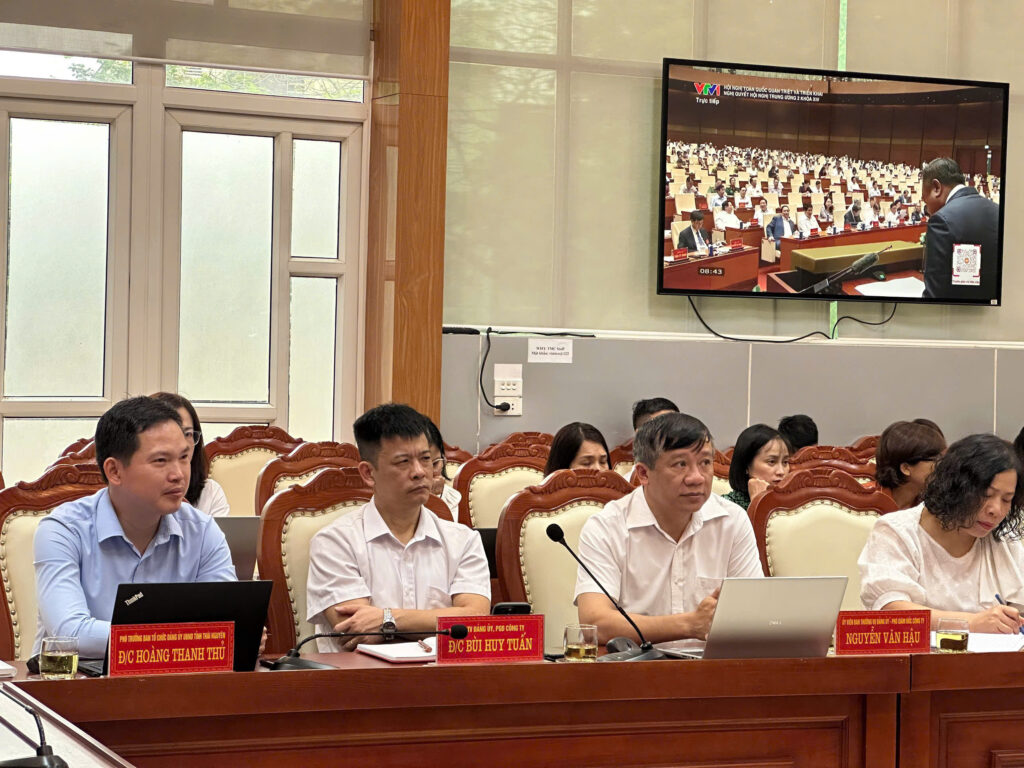 Dự tại điểm cầu Cơ quan Công ty có đồng chí Hoàng Thanh Thủ – Phó Trưởng Ban Tổ chức Đảng ủy UBND tỉnh Thái Nguyên, đồng chí Trần Văn Long – Bí thư Đảng ủy, Giám đốc Công ty; các đồng chí Ủy viên Ban Thường vụ Đảng ủy, Ban Giám đốc, Kế toán trưởng, Chủ tịch Công đoàn, Bí thư Đoàn Thanh niên Công ty và các đảng viên thuộc các chi bộ khối cơ quan.