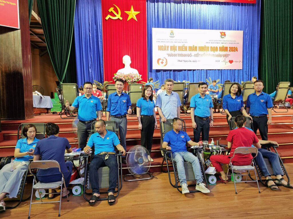 Ngày 06/7/2024 Đoàn Thanh niên Khối CNDN tỉnh Thái Nguyên (CTCP Kim loại màu TN, CTCP Gang thép TN, BQL các KCN, XM Quang Sơn) tổ chức chương trình ngày hội hiến máu nhân đạo năm 2024. Chương trình có sự đồng hành của Công đoàn các đơn vị, Trung tâm huyết học & truyền máu bệnh viện Trung ương Thái Nguyên, CLB Tóc Thái Nguyên và gần 400 đoàn viên thanh niên các đơn vị.